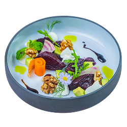 Grilled rock lobster, rocket, crunchy vegetables, apple dressing